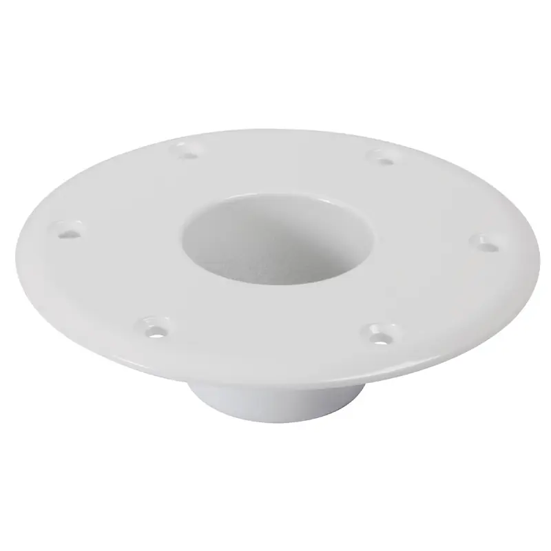 Durable aluminium table pedestal with a white epoxy coating for marine use.
