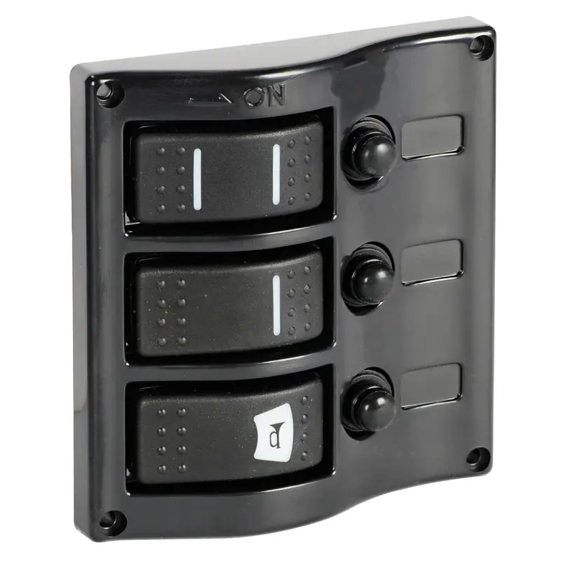Durable control panel with 3 LED rocker switches for reliable marine use.