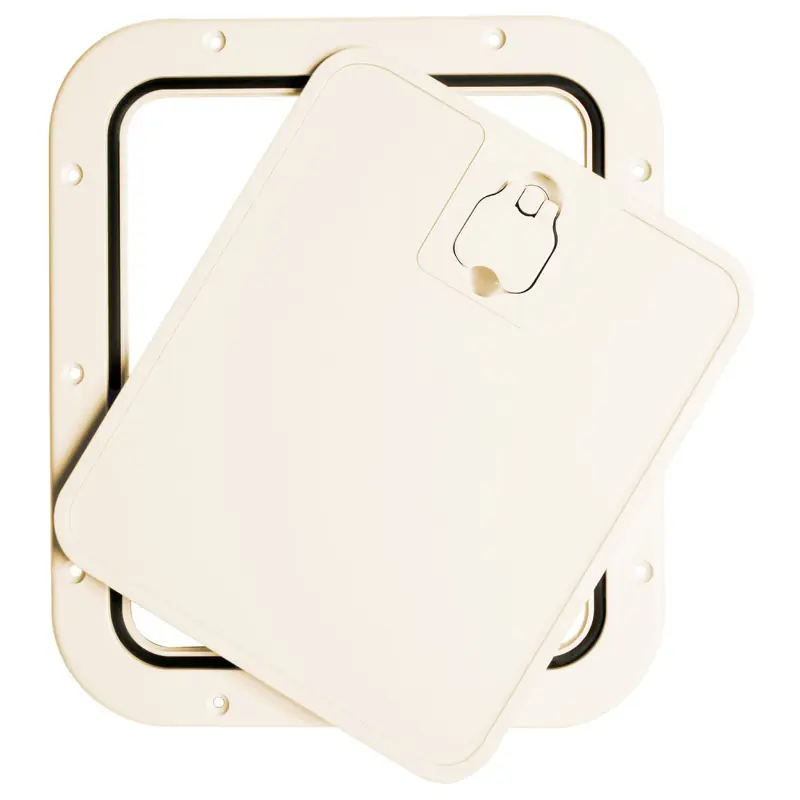 Very sturdy anti-skid surface; splash-proof lid closure with neoprene seal; flush mounting; they can be used as hatches for lockers, fishing containers or as boxroom hatches or bayonet front bulkheads; removable front for easy access. Ideal for installation on dashboard with nearby steering bench.