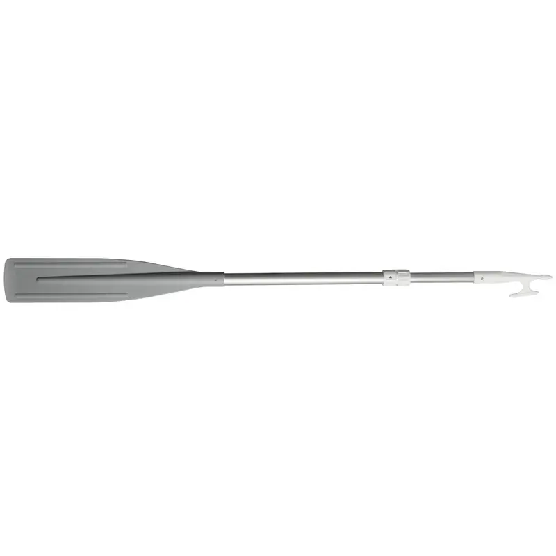 Durable telescopic oar with a boat hook for easy maneuvering on the water.