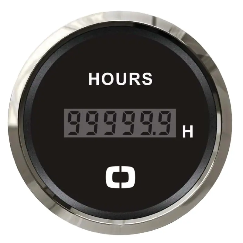 Accurate digital hour counter with a stylish black glossy finish for reliable time tracking.