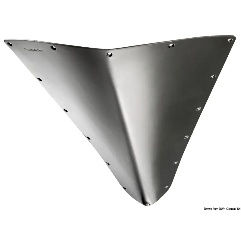 Mirror-polished AISI316 stainless steel bow shield, bored and countersunk.Supplied with a pre-fold, it adapts to the different bow shapes of boats when installed.With oversized thickness, it resists even the most violent impacts.