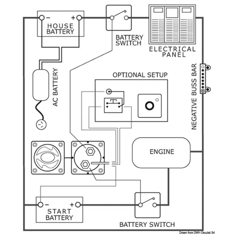 This Voltage Sensitive Switch (VSS) automatically senses the voltage of two connected batteries or battery banks and provides optimal, efficient charging of the second bank.The VSS allows for two independent battery banks to be combined or isolated based on the presence of a charging source (such as an engine alternator or battery charger).Once the charging source is activated, the VSS lets the first battery of the main bank (engine battery) recharge; when this latter reaches 13.2V, the switch opens the circuit and lets the second battery (service battery) recharge.The emergency parallel function can be operated manually by means of a knob or through an On/Off button on the dashboard.Recess or surface mounting.