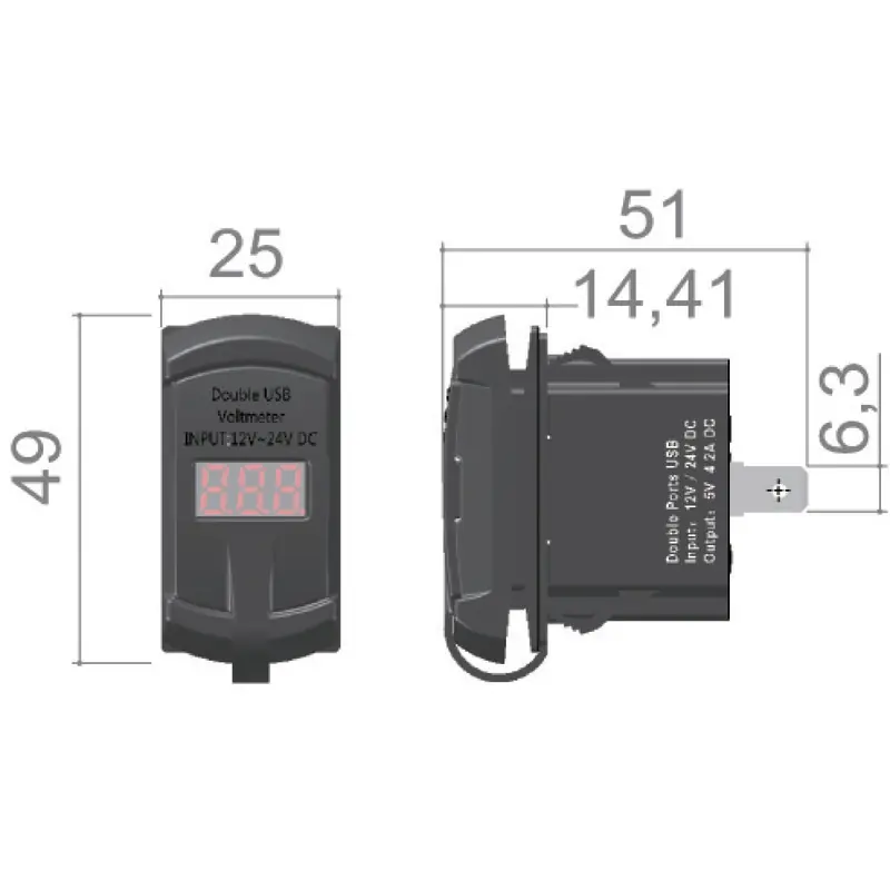 Osculati - Dual USB-A+C plug + 12/24 V voltmeter - 14.195.63