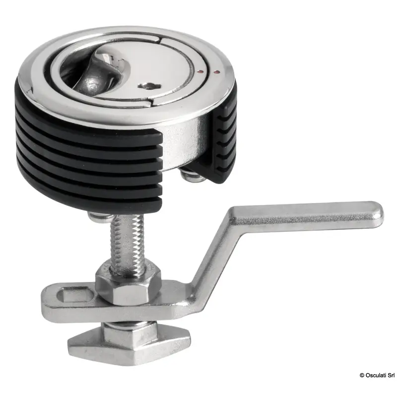 Featuring a very comfortable grip, it offers all the best characteristics in a single flush deck design model.- 316 mirror-polished stainless steel;- flush aesthetics;- large ergonomic handle;- Handle can be lowered every 90°.- Foldable handle every 90°;- visual indicator open/closed;- ergonomic nut for easy calibration and allowing for emergency exit;- straight cam suitable for sliding door closure;- cam with two possible positions;- plastic spacer with invitations for custom cutting.