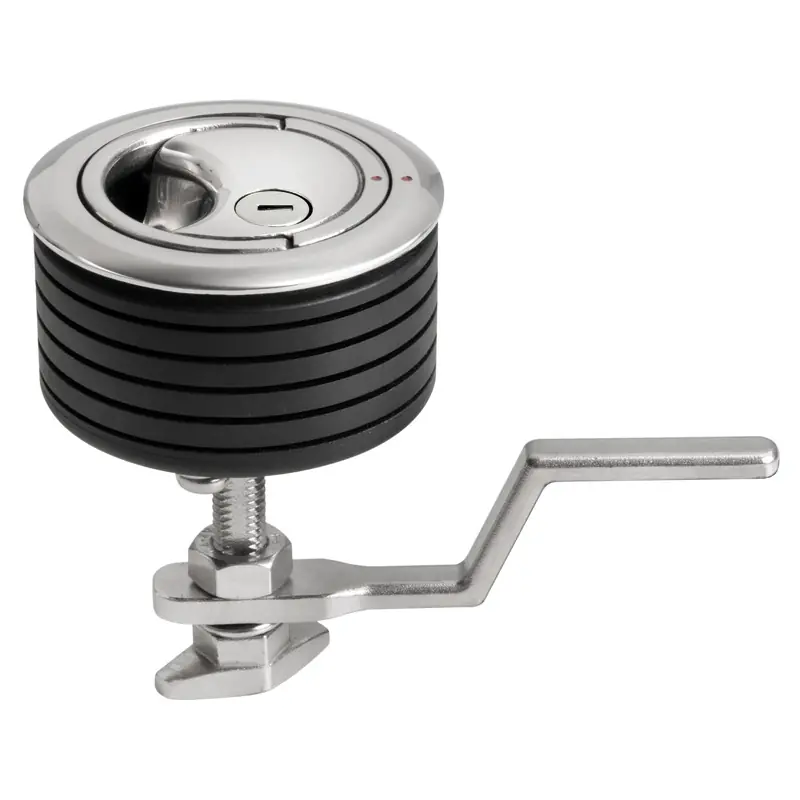 Featuring a very comfortable grip, it offers all the best characteristics in a single flush deck design model.- 316 mirror-polished stainless steel;- flush aesthetics;- large ergonomic handle;- Handle can be lowered every 90°.- Foldable handle every 90°;- visual indicator open/closed;- ergonomic nut for easy calibration and allowing for emergency exit;- Straight cam suitable for sliding doors and having two different positions.- plastic spacer with invitations for custom cutting.