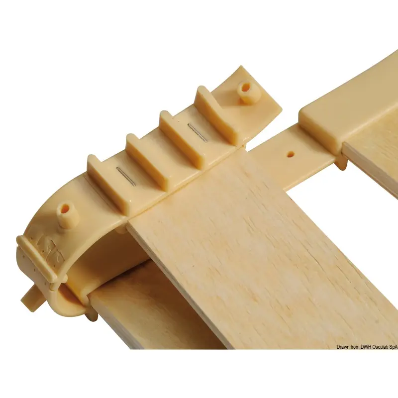 Made of flexible wood bent slats joined together by means of special anti-slip and mouldable plastic tapes that follow the bed shape. The elastic base has 2 functions:1) aeration of the bed to avoid mould and humidity2) excellent comfort of the bed.Supplied in single-bed kit (for double bed, use 2 kits).The wooden slats can be cut according to the desired perimeter and are then assembled using the flexible tapes.