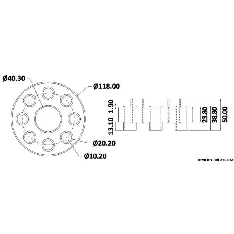 Osculati - Elastic coupling joint 10 bores - 52.290.16