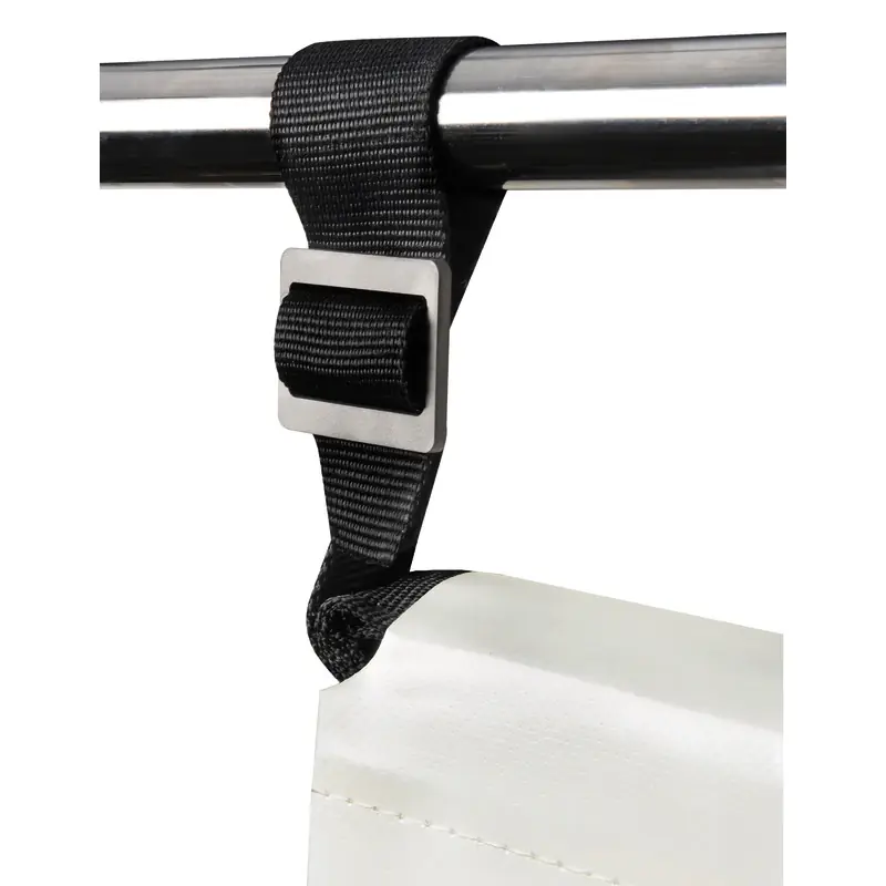 Ladder to be used to climb back onboard in case of emergency.Easy and fast installation to the stern pulpit.Technical data:- Made of polyester tape, fiberglass inserts to reinforce the steps.- FLUO stripe on the steps for better visibility at night.- Case with retro-reflective stripe.- Install the ladder to the pulpit by means of 2 black satin-finish stainless steel buckles + 2 TENAX spring buttons.- PVC case.