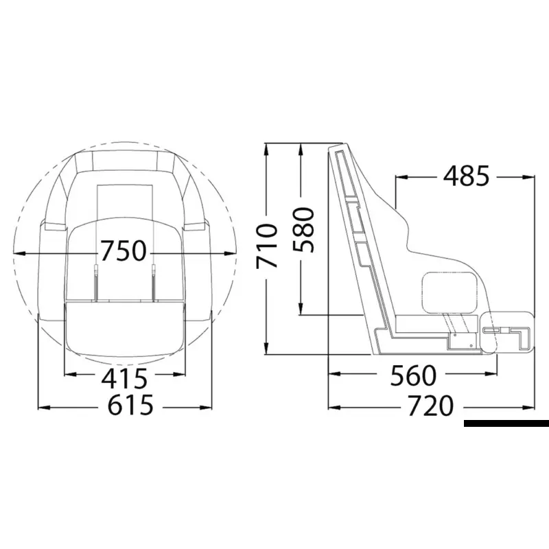 Osculati - Padded seat with Flip UP RS56 to be lined - 48.410.32