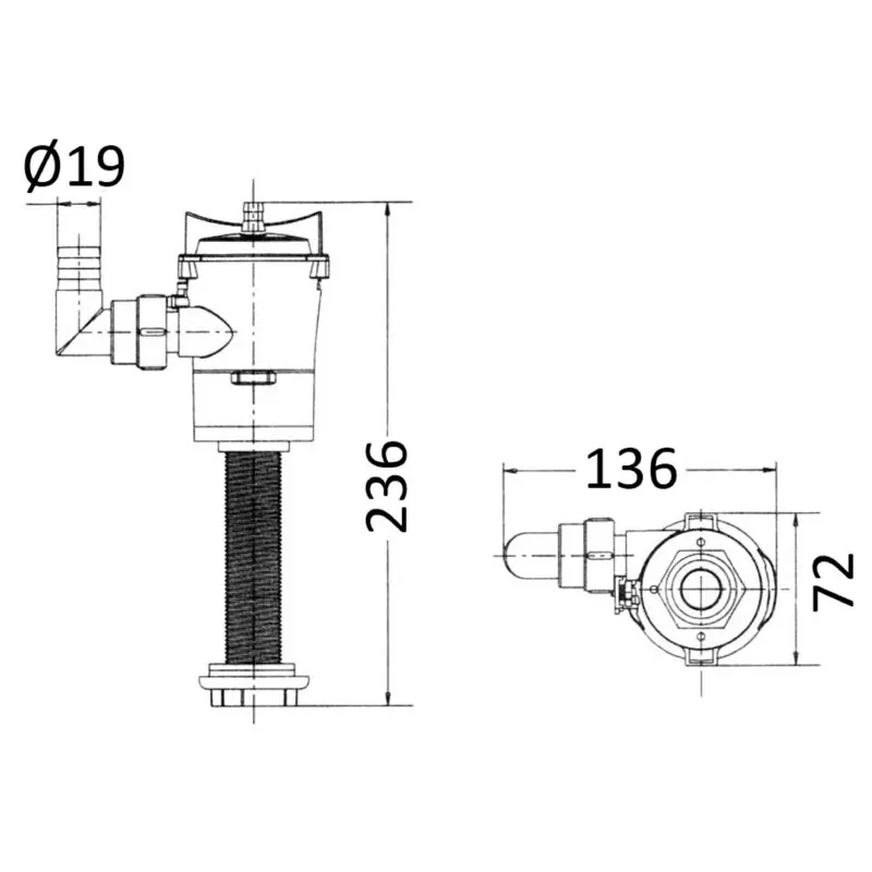 Osculati - Europump 90° bulkhead pump fish tank aeration - 16.160.05
