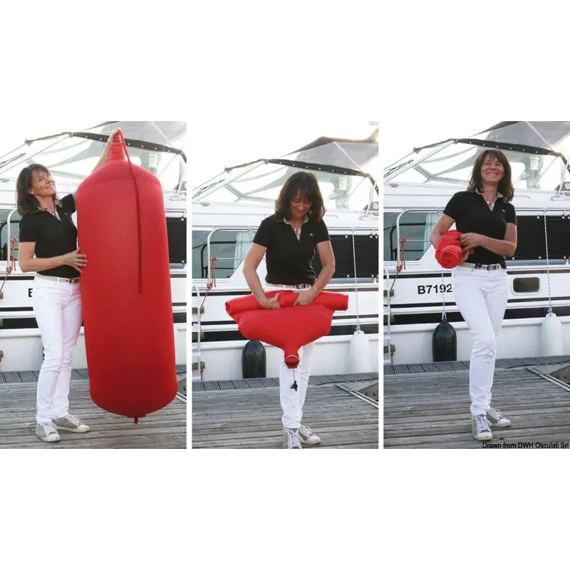 The inside is resistant to compression and tensile strength, the outside is made of fabric. Resistant, lightweight, handy product that saves space on board.Dope-dyed yarn very resistant to UV rays.Sturdy fabric that leaves no scratches or marks on the hull.Recommended minimum pressure 0.35 bar, maximum 0.50 bar.