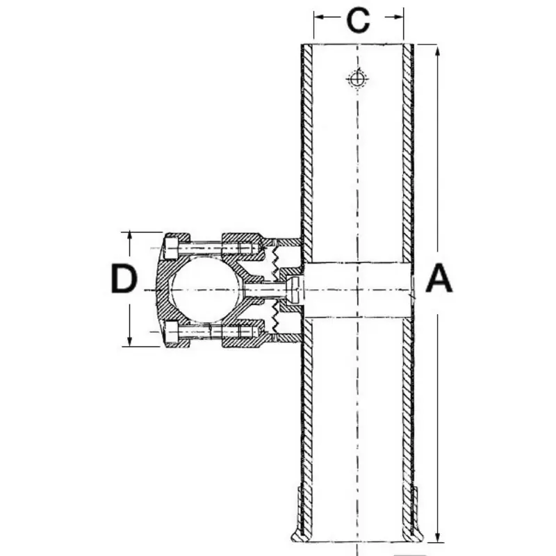 360° horizontal and vertical swivelling. An adjusting screw passes through the rod holder pipe therefore there is no need to unscrew the clamp. Made of precision-cast polished AISI316 stainless steel + santoprene bushing.