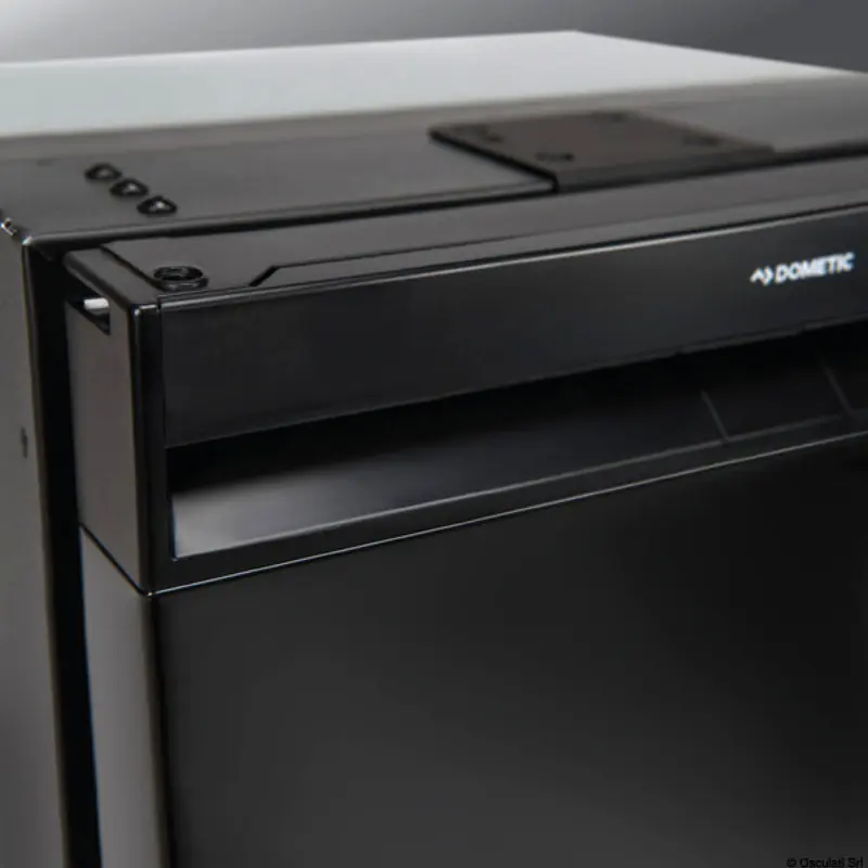 Refrigerators with dark black panel. Equipped with 3 convenient shelves and a small compartment for bottles or cans. Freezer compartment can be ordered separately as an accessory. - Touch control panel with integrated LED light bar;- Reversible door hinge;- Full-width door handle neatly integrated for easy access;- Energy-efficient, light, compact compressor with 3 operating modes (Eco/Boost/Silent);- Compressor can be remote-controlled in the 35-litre version to reduce depth to minimum;- The frames are adjustable for standard installation or recessed fitting (sold separately 50.907.XX / 50.908.XX).