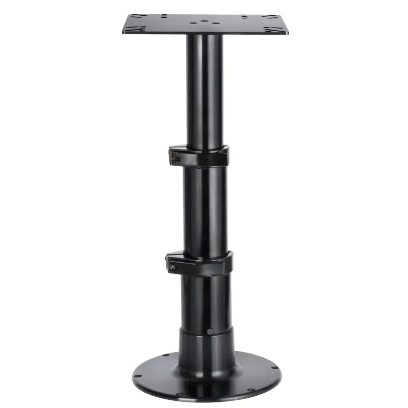 Durable black anodized aluminum table pedestal with gas spring for effortless height adjustment.