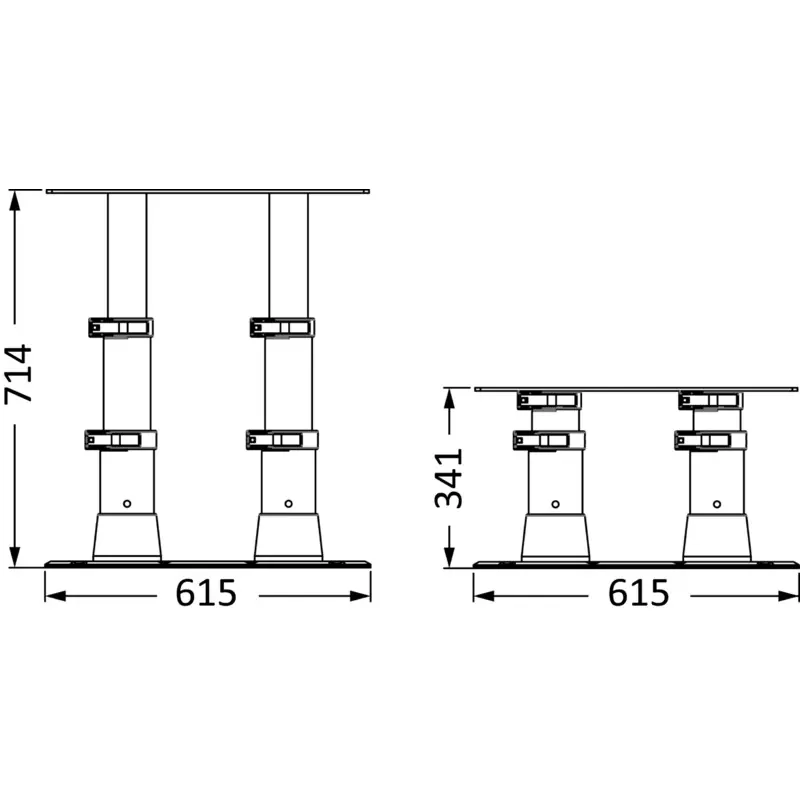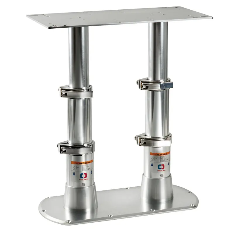 Made of mirror-polished anodized aluminium.Stainless steel clamping collars for a stable and sturdy pedestal. Fitted with double gas spring for upstroke, no need to bore the floor for downstroke.Tri-telescopic. Suitable for large-size tables.Suitable for large tables.