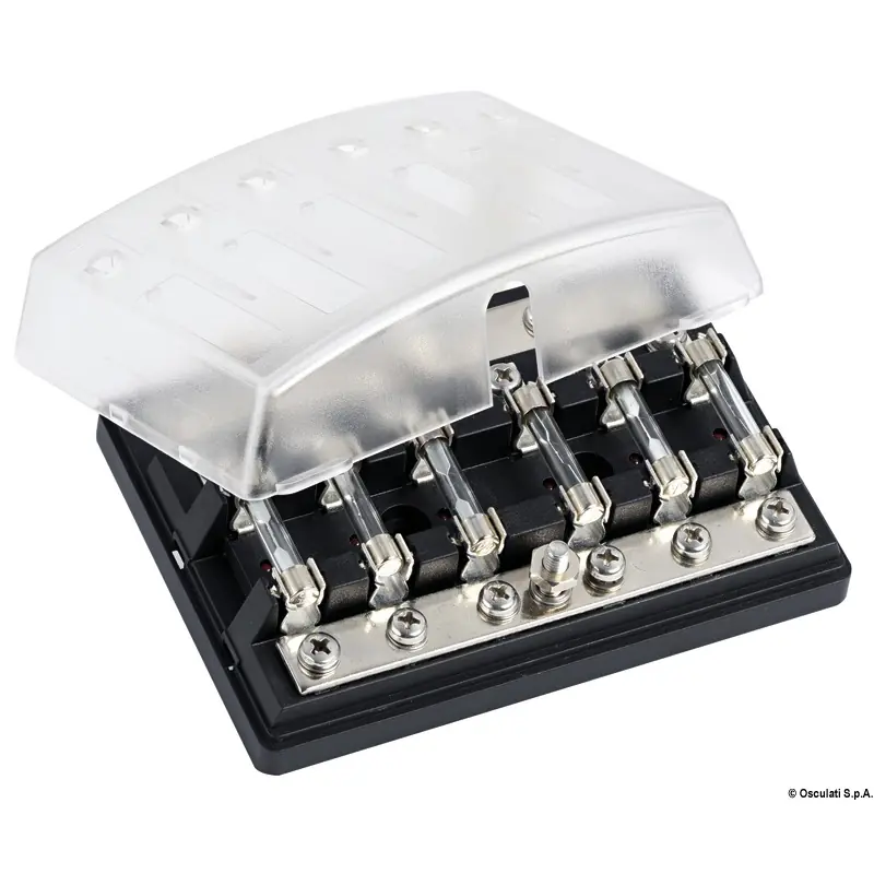 This glass fuse holder box features an LED indicator for blown fuses, ensuring reliable protection.