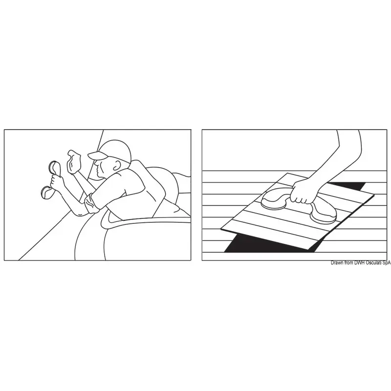 Ideal to hang to the boat sides during cleaning operations and external maintenance activities, otherwise very tiring. Also fit for lifting hatches. It hangs to any surface within seconds. Fitted with suction pads and flip-up fastening flaps.