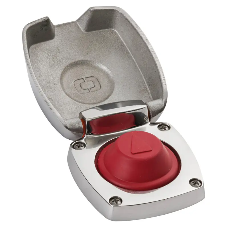 Entirely made of mirror-polished AISI 316 stainless steel, with integral button cover for enhanced protection.Completely waterproof, ideal for operating relays below deck, easily installable with four self-tapping screws.