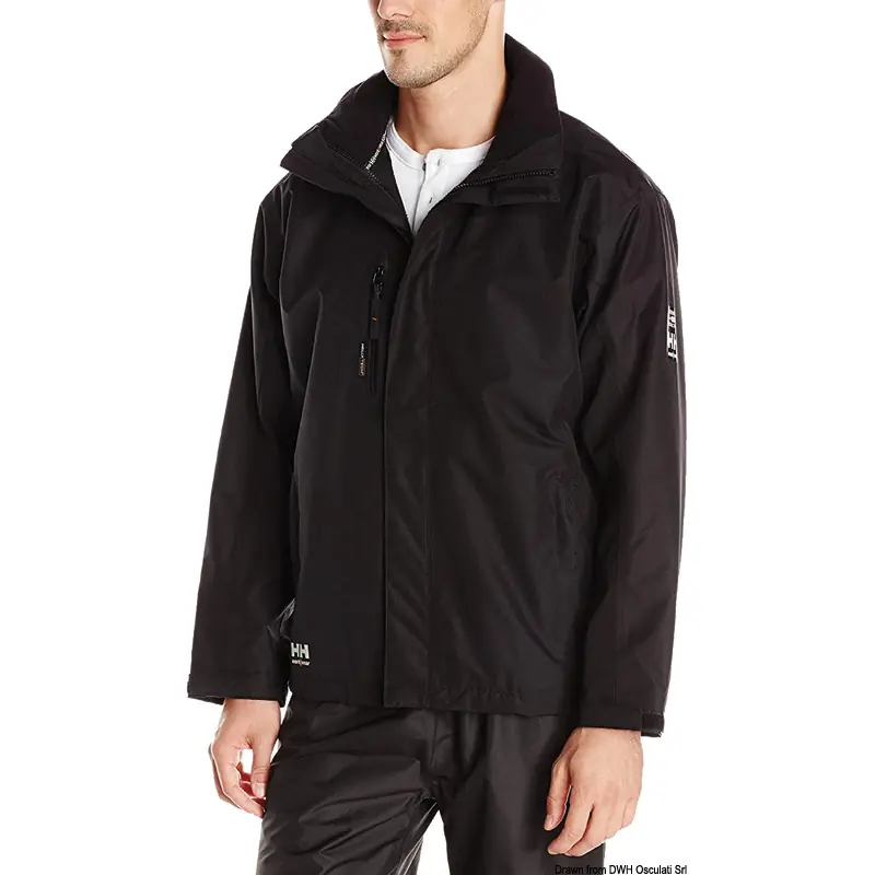 Classic waterproof and breathable Helly Tech® shell jacket for all-year use. It matches both fleece and Primaloft sweaters.Waterproof/breathable: 100% Polyester - 145 g/m². Fully-taped construction. Detachable hood. Brushed polyester inside collar. Chin protector. No shoulder seams. Bi-direction zipper with hook&loop fastener. Chest pocket with water-repellent zipper. Two front pockets with zipper. Adjustable cuffs with hook&loop fastener. Adjustable hem with drawcord at the bottom (optional buttons). Embellishment zipper. Click-on inside loop for accessories. Drop back for extra coverage. EN 343 3,3.