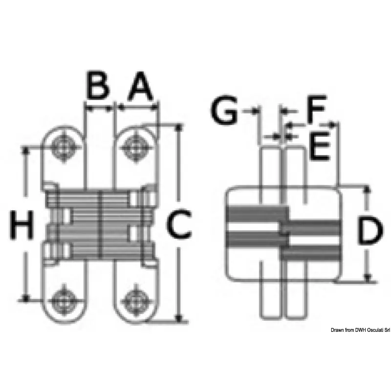 Osculati - Hidden hinge 44.5 mm 2-pcs package - 38.527.03