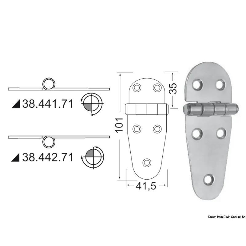 Osculati - Hinge standard pin 101x41,5 mm - 38.441.71