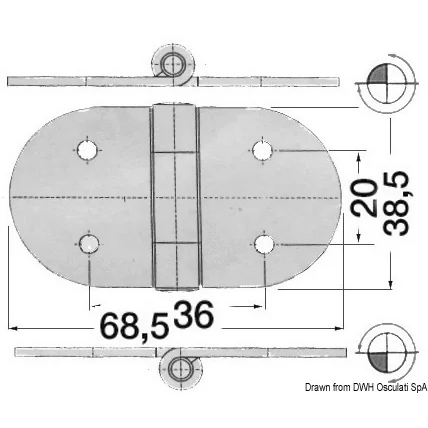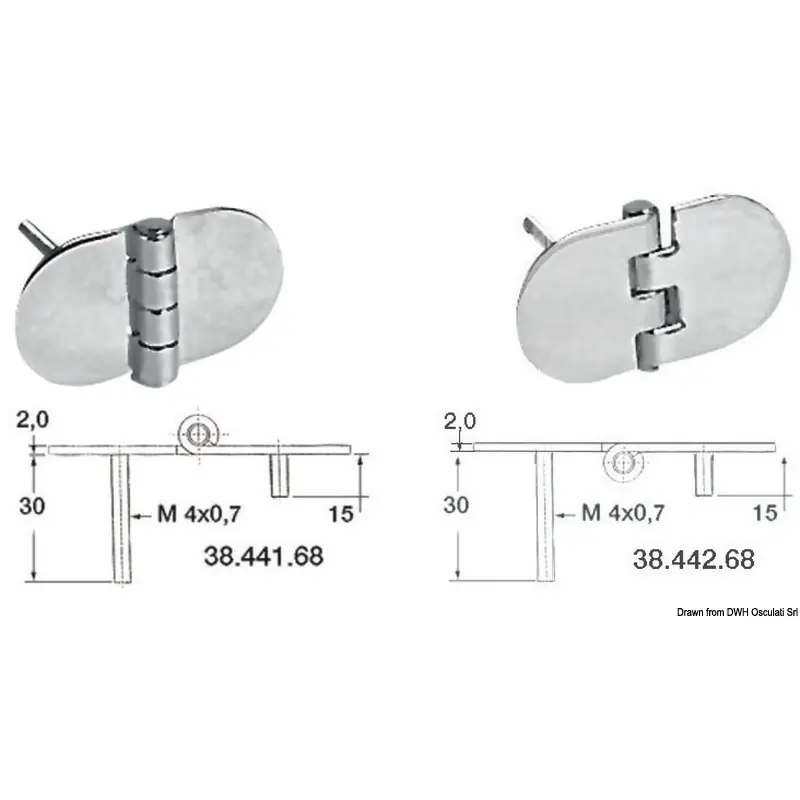 Osculati - Hinge standard pin mirror polished S 68.5x38,5 mm - 38.441.68