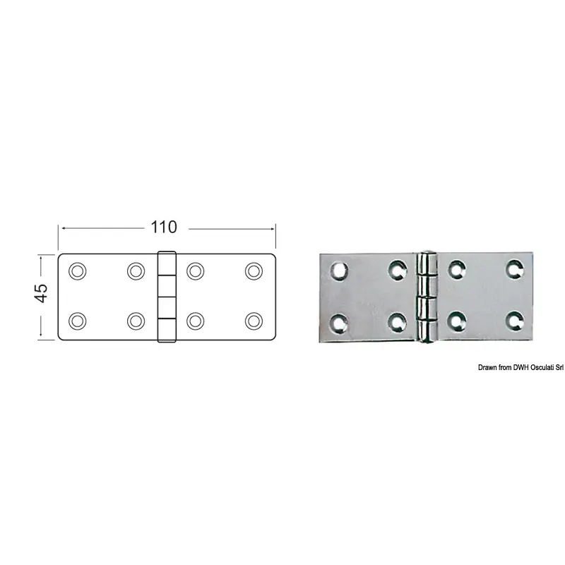 Durable 2.5mm hinges by Osculati, perfect for marine applications.