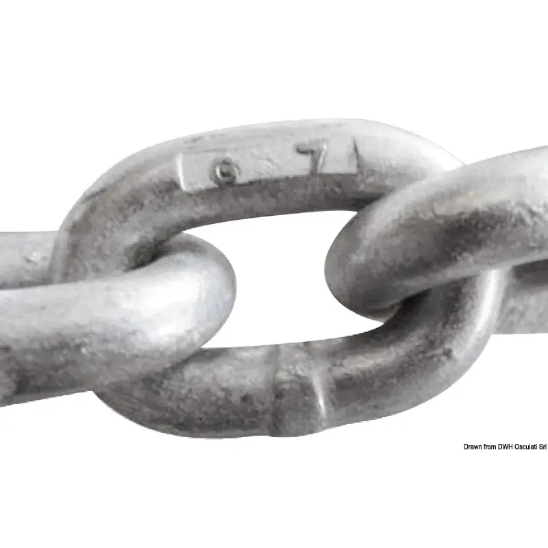 Under the same mechanical resistance conditions, this chains enables the use of a lower section:a) 8-mm OSC-G7 instead of 10-mm standard;b) 10-mm OSC-G7 instead of 12-mm standard.This allows for a 40/60% saving in weight or, weight being equal, a 40 to 60% longer chain.The tangles of chain are delivered in wooden boxes or convenient packages easy to handle and stock. Each single metre of chain has an OSC-G7 distinctive mark to ensure quality.