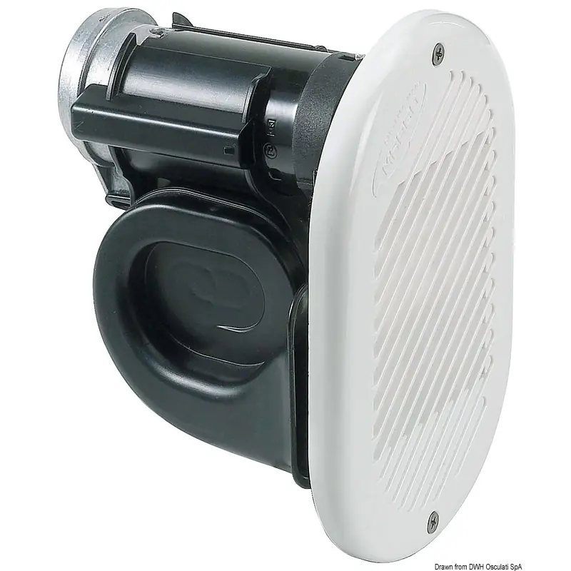 Powerful 12V electropneumatic horn designed for marine use, featuring a sleek white finish.