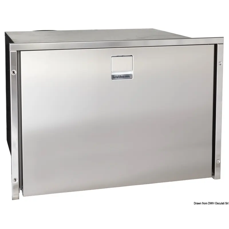 Series of refrigerator/freezer appliances with stainless steel front opening drawer and stop. With Secop compressor (12/24 V universal voltage).