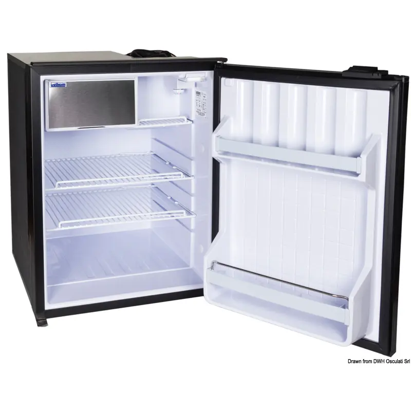 Fitted with electronic control that turns off the fridge when the voltage goes under 10.4 volts and that starts up again when voltage goes up to 11.7 volt (adjustable values respectively up to 9,6 and 10,9 volt).2000-2500-3000 RPM rotation speed adjusted according to the cooling volume. Forced cooling.Current draw: 380 W/24h.