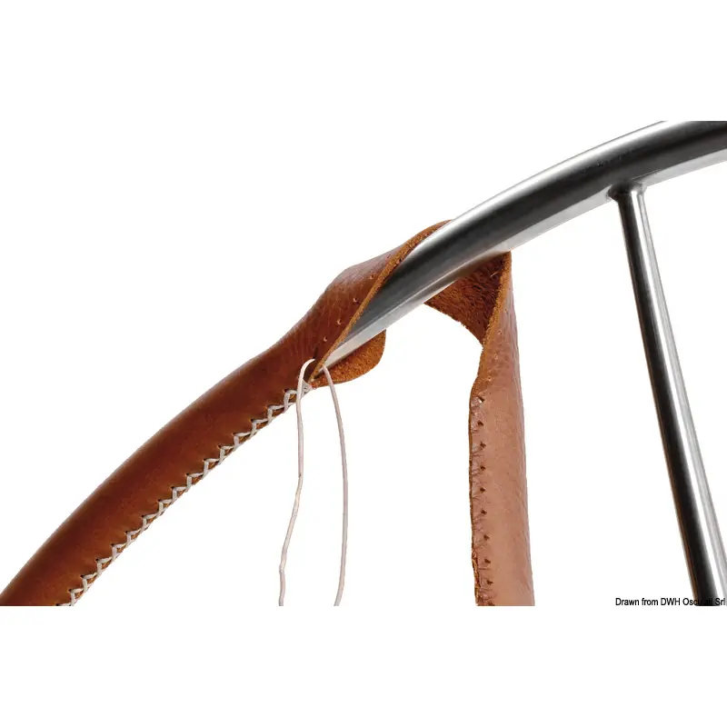 Pre-punched leather cover kit for steering wheels, 120-cm max diameter and 22-mm tube.Display blister containing what's necessary to cover steering wheels with leather. You can choose the smooth or suede side to be sewn.The kit contains:- 2 x strips of pre-punched leather with already made wheel central seam.- 2 x reels of Marlow thread.- 2 needles.- 1 punch.