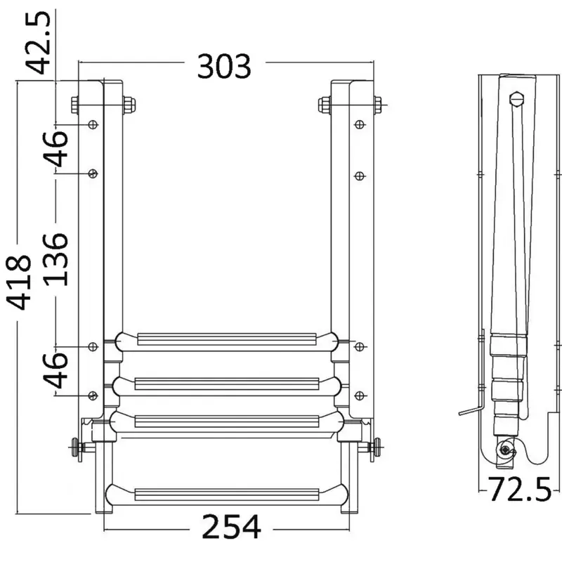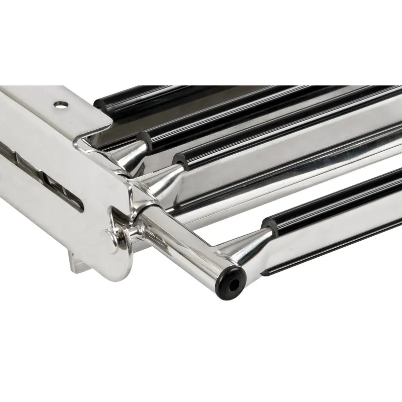 Hidden ladders with 4 rectangular black plastic rungs.100% stainless steel.