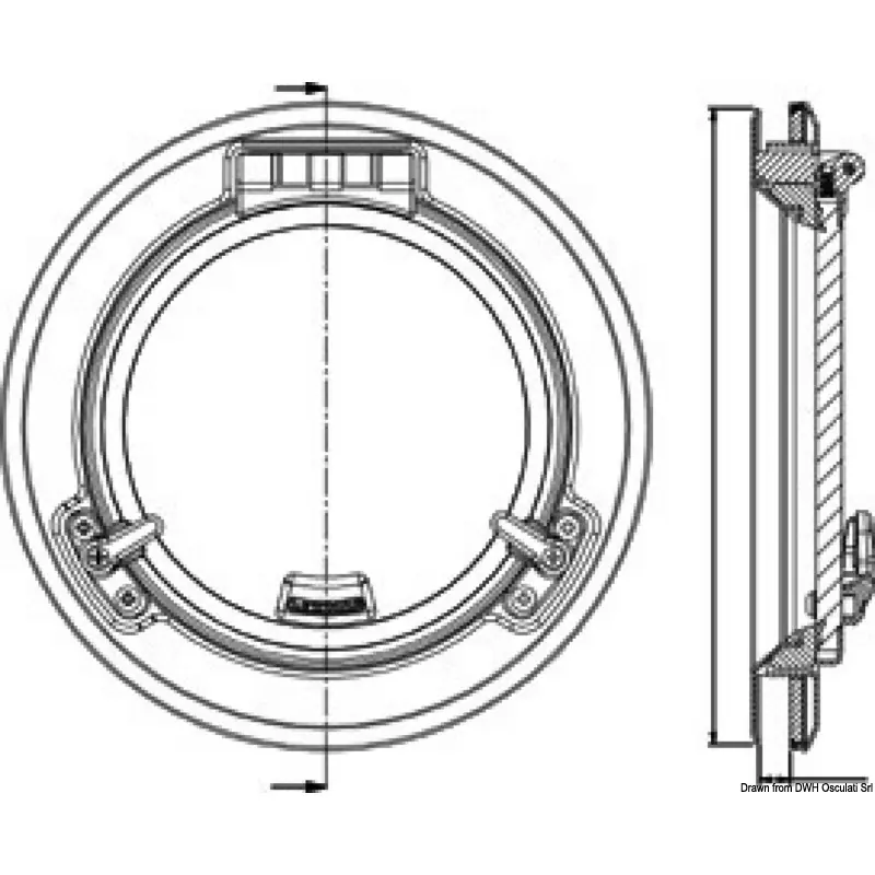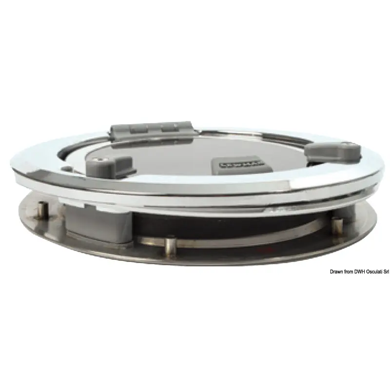 Supplied with trimming ring made of chromed ABS, mounting screws and smoked lens. Fast and simple installation by means of a ring nut with threaded bores, to be made by a single operator. 180° opening. CE-approved for category B Area 1.