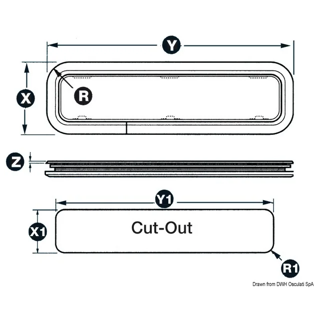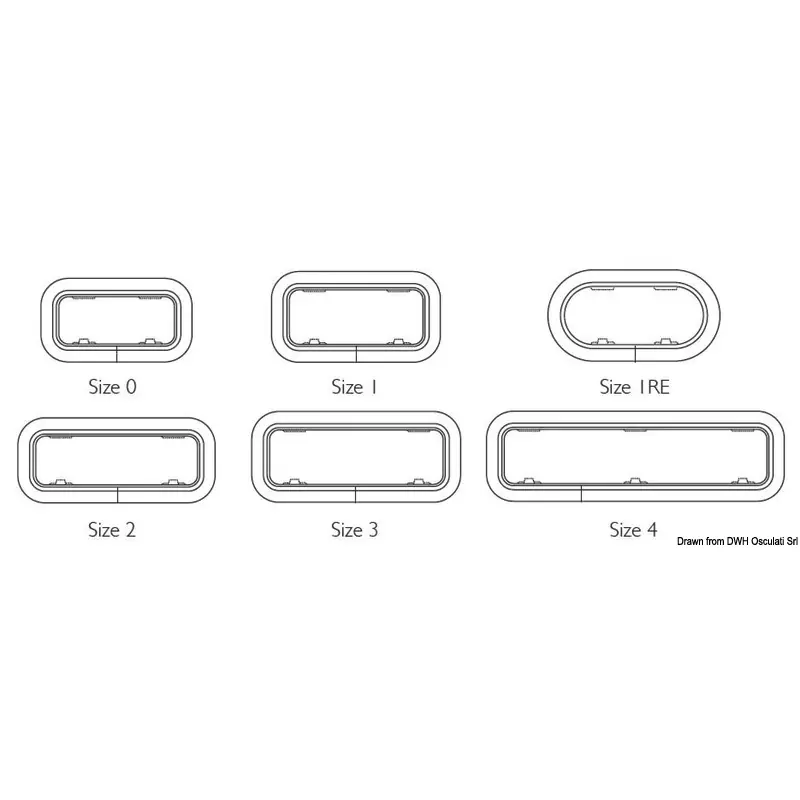 Portlight range with high quality finish and materials. Fitted with built-in friction levers to leave the portlight open in any position, quick and safe locking. Supplied with white ABS trimming ring (ivory colour available upon request), it includes mounting screws and flyscreen, smoked glass. Easy to install by a single person by fastening the trimming ring into the threaded bores. CE-approved for AREA 2.