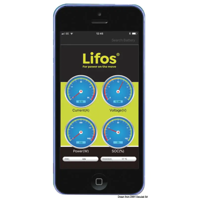 LIFOS lithium iron phosphate (LiFePO4) batteries offer outstanding performance for all applications (except engine starting) and perfectly replace lead acid batteries without affecting the electric installation.These batteries ensure several advantages over lead batteries:- 40% weight reduction, doubled charge/discharge cycles at 100% depth of discharge, full recharge with no damage, maintenance free, fast recharge, 99% performance efficiency, more than doubled usable capacity.A LiFePO4 battery has twice the voltage of a lead battery as well as high and even voltage most of the time. Among the lithium batteries these are the most eco-friendly and can be mounted at all angles.These batteries can be charged via any battery charger and the integrated BMS-Battery Management System monitors the charge/discharge functions.Dimensions and (conic) poles are similar to most service batteries used so far.Up to 4 batteries can be connected in series or in parallel in order to get a 48V battery bank.Charge state and remaining running time are available in real time on a dedicated App on your smartphone that connects via Bluetooth to the batteries. The App also warns the user to recharge the battery when residual charge is lower than 30%.