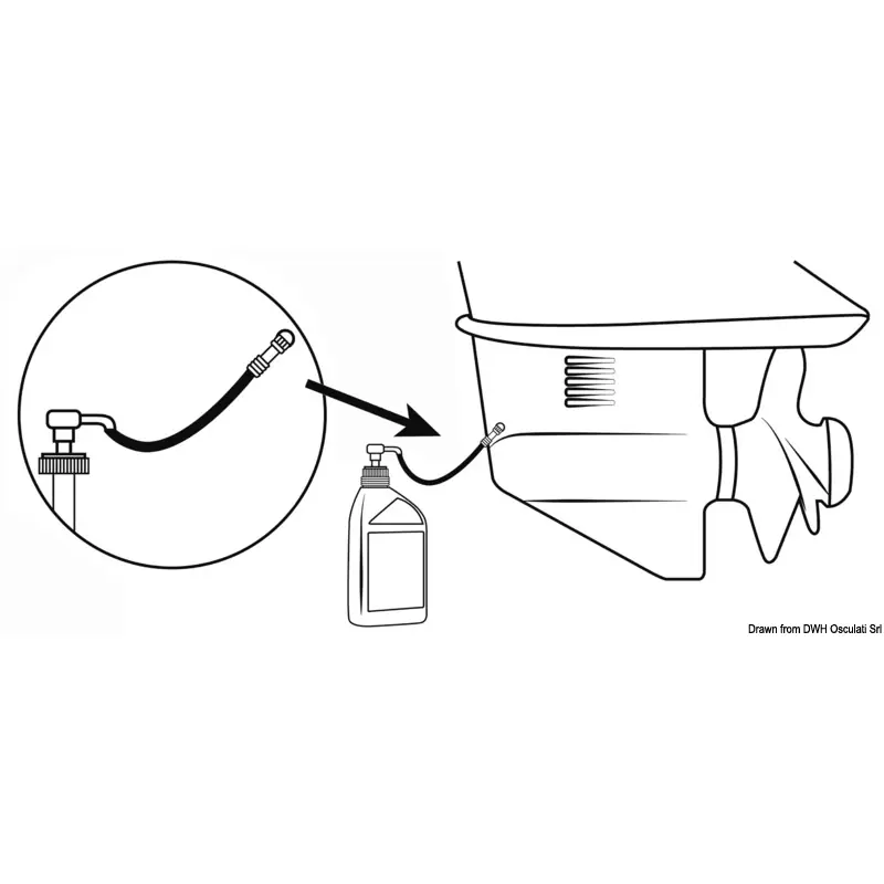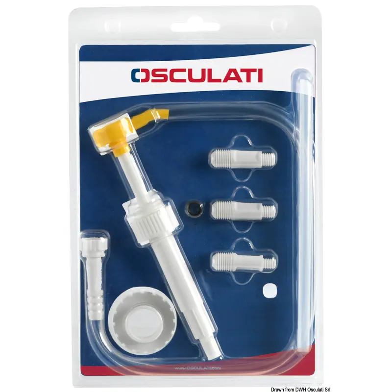Allows topping up/filling of oil for the foot or stern group or Sail Drive, starting from a standard canister of 1/5 litres. The kit includes:- Pump to put into the drum fitted with adapter for the drum thread (USA and Europe).- 3 fittings to fill any 2/4-stroke outboard engine and Volvo SX, Mercruiser, OMC, OMC Cobra sterndrive units,