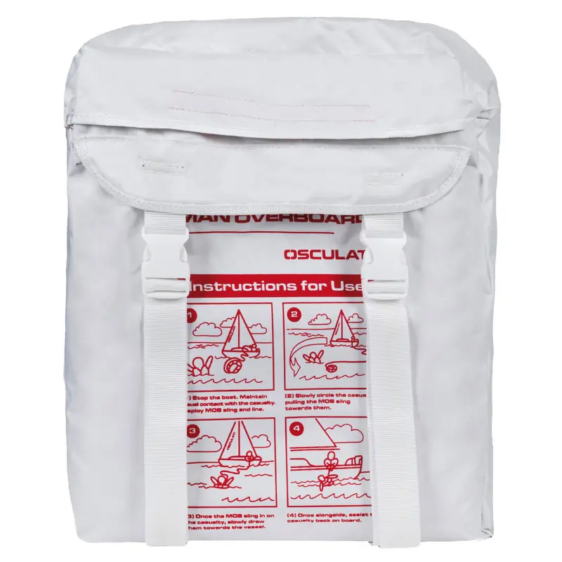 It comes in a bag with a floating levilene line (22.408.06). To be fastened to the pulpit, it contains a buoyancy aid to be used in case of emergency. Smaller and more convenient than horseshoe lifebuoys.