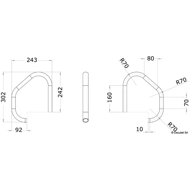 Oval-section climb-up handle for better grip.Made of mirror-polished 316 stainless steel. Attached by the ladder through studs or plates.Item sold individually (for a pair, order no. 2 pieces).