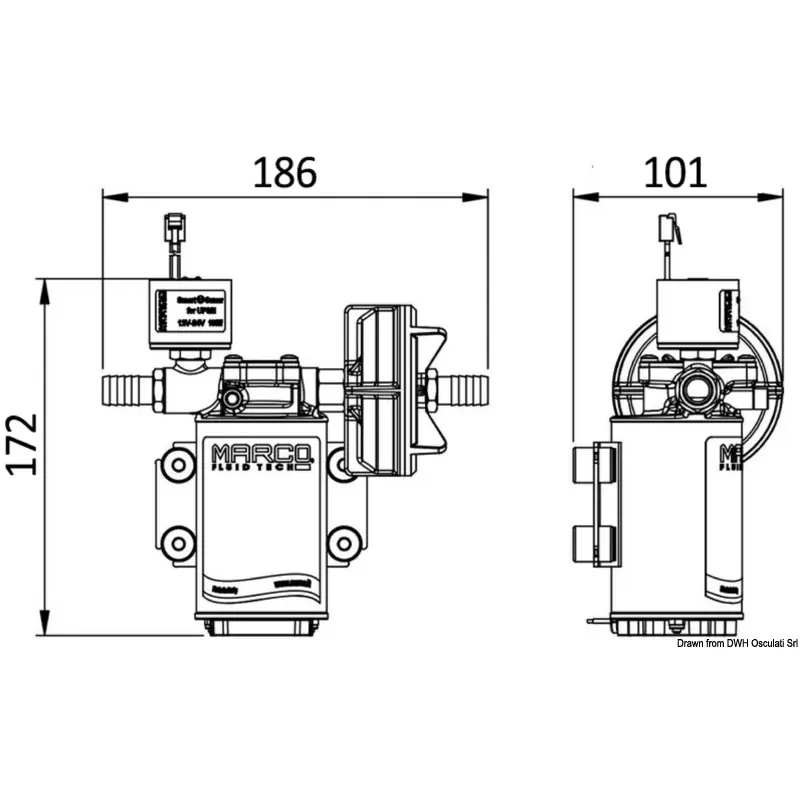 Self-priming with helical PEEK gears.Pressure, current and voltage constant control.Automatic stop when running out of liquid.Nickel-plated brass body, stainless steel shaft, FKM seals.The engine progressively increases its revolutions to reach the required flow and ensure long working cycles, lower noisiness and consumption optimization.The pump is fitted with circuit breaker and overvoltage protection device.A protection system engages after 90 seconds of dry running.
