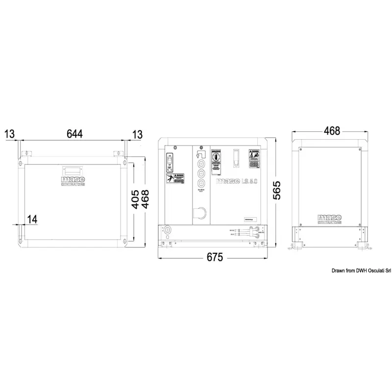 Engine: easy access in case of maintenance of the power and lubrication systems, of the sea water pump and of the air filter. Safety stop in case of low oil pressure. Safety stop against overtemperature of engine and exhaust gas. Double vibration dumping system. Easy-to-replace oil and fuel filter. Oil drain pump provided.Alternator: synchronous, 2 poles, self-adjusted, self-excited, brushless. Weatherproof epoxy-resin coated rotor and stator. Dynamically balanced rotor. H insulation class. Safety stop against coiling overtemperature.Soundproof cabinet: self-bearing frame made of aluminium profiles and lightweight coated marine 5754 aluminium alloy panels featuring extremely high weatherproof properties. Very good access to the inside housing for easier maintenance operations even when the genset is installed in confined places.Cooling system:Air/water: the cooling system consists of an air/sea water exchanger. The air flows provide an efficient cooling and the optimal temperature for the best performance and reliability of the generator. This system ensures better operating conditions for the genset despite the room temperature of the onboard housing.Coolant/water: the cooling of the engine is based on a coolant closed circuit controlled by a seawater/coolant heat exchanger.Air inside the alternator is cooled by a seawater/air heat exchanger.This system makes cooling of alternator more effective and achieve optimal temperature for best performance and reliability of the generating set despite the room temperature of the onboard housing.Control unit: InteliNanoNT MRS 3 - (118x118mm) - IP65
