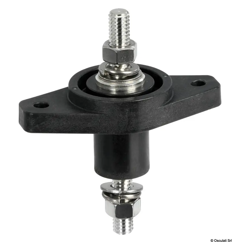 Suitable for high amperage. Nylon/fiberglass base, stainless steel pin and nuts.
