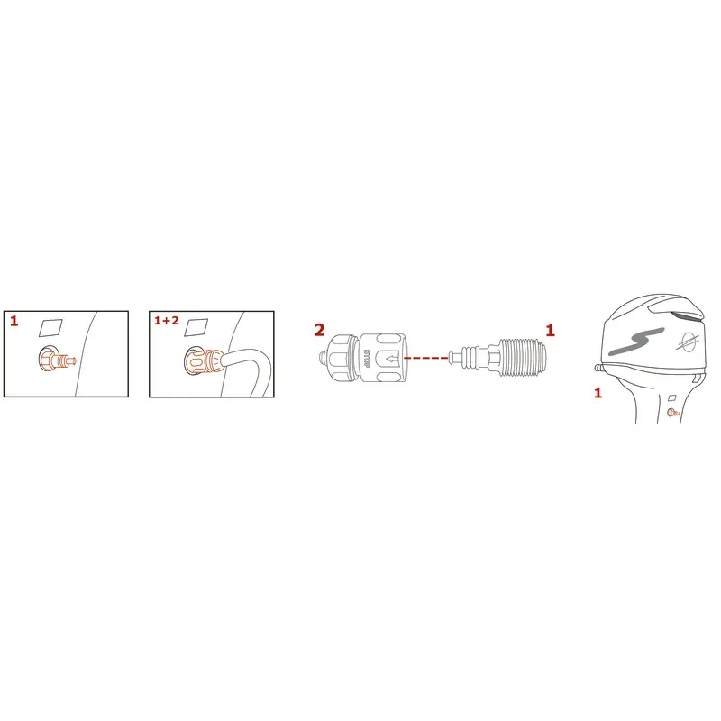 Washing system for outboard engines equipped with threaded connector. The system consists in a special threaded valve + snap fitting 36.189.02 The valve can be permanently installed on the outboard engine.The valve can be permanently installed on the outboard.