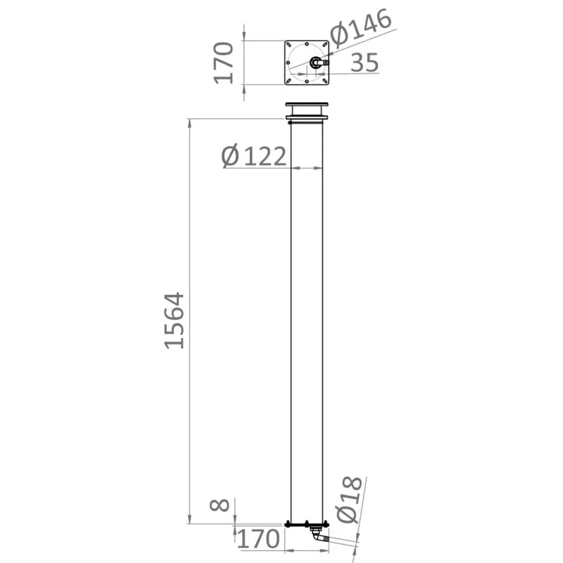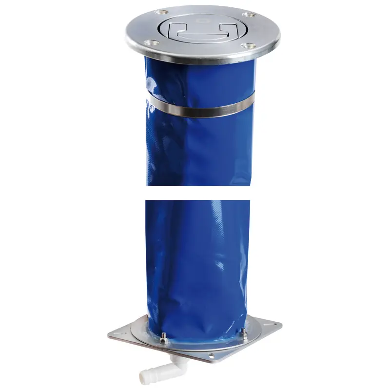 Dual universal retractable davit kit made of anodized aluminium.When in retracted position, it is hidden under the walking surface and leave the deck clear.Fitted with double sheave and becket for both gangway and dinghy.Two operating positions: in line with the boat (dinghy holding) or inclined at 20° on the inner part (gangway holding). The telescopic tube has a handle that can be rested on its head and adjusts the pole at different lengths depending on the needs and on the dinghy type.OPTION 42.358.90: PVC drain bag with hose connector to be used in case of water seepage. Easy to install on the davit base by means of a metal clamp. Anodized aluminium rest base and anti-shock seal + drainage system.