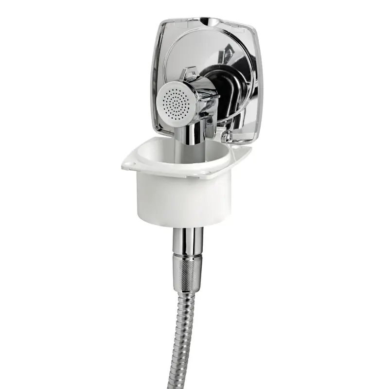 Durable chromed shower box with a 2.5m stainless steel hose for marine use.