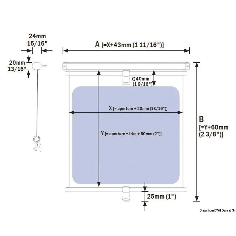 Ultra-slim cassette roller blind, suitable for even the smallest of portlights.It can be used for vertical or horizontal surfaces, with the added benefit of also being well suited for curved surfaces. 100% blackout fabric, simple installation.Available upon request in a wide range of standard and custom sizes. Cassette colour: white (RAL9016). Beige (RAL9001) available on request.