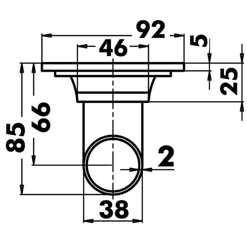 Durable oval cockpit drain in 316 stainless steel, featuring a removable grid for easy maintenance.