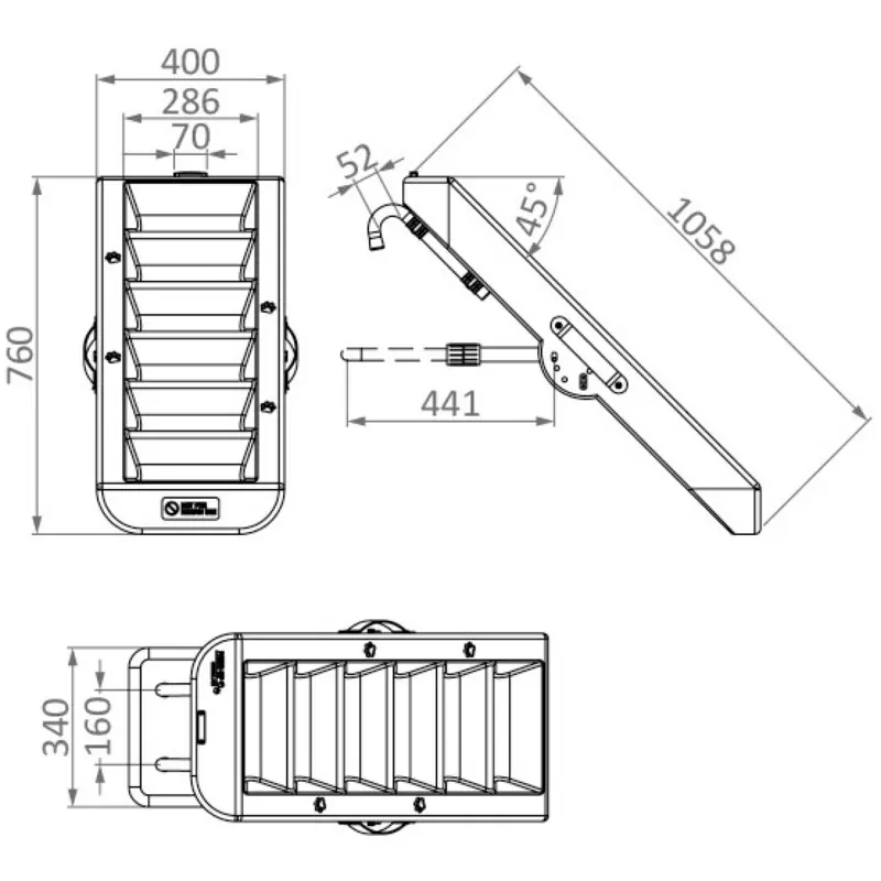 Lightweight, antiskid, easy to install on and remove from already mounted ladders (min. 3 steps, 38- to 57-mm wide) in a matter of seconds.Telescopic tubes adjustable in 3 positions for perfect inclination.Fitted with safety strap with hook&loop fastener.