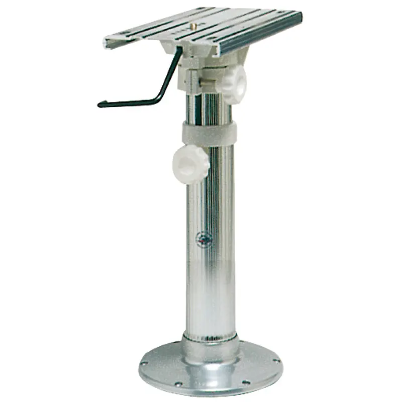 Adjustable telescopic pedestal with a polished finish for optimal marine use.